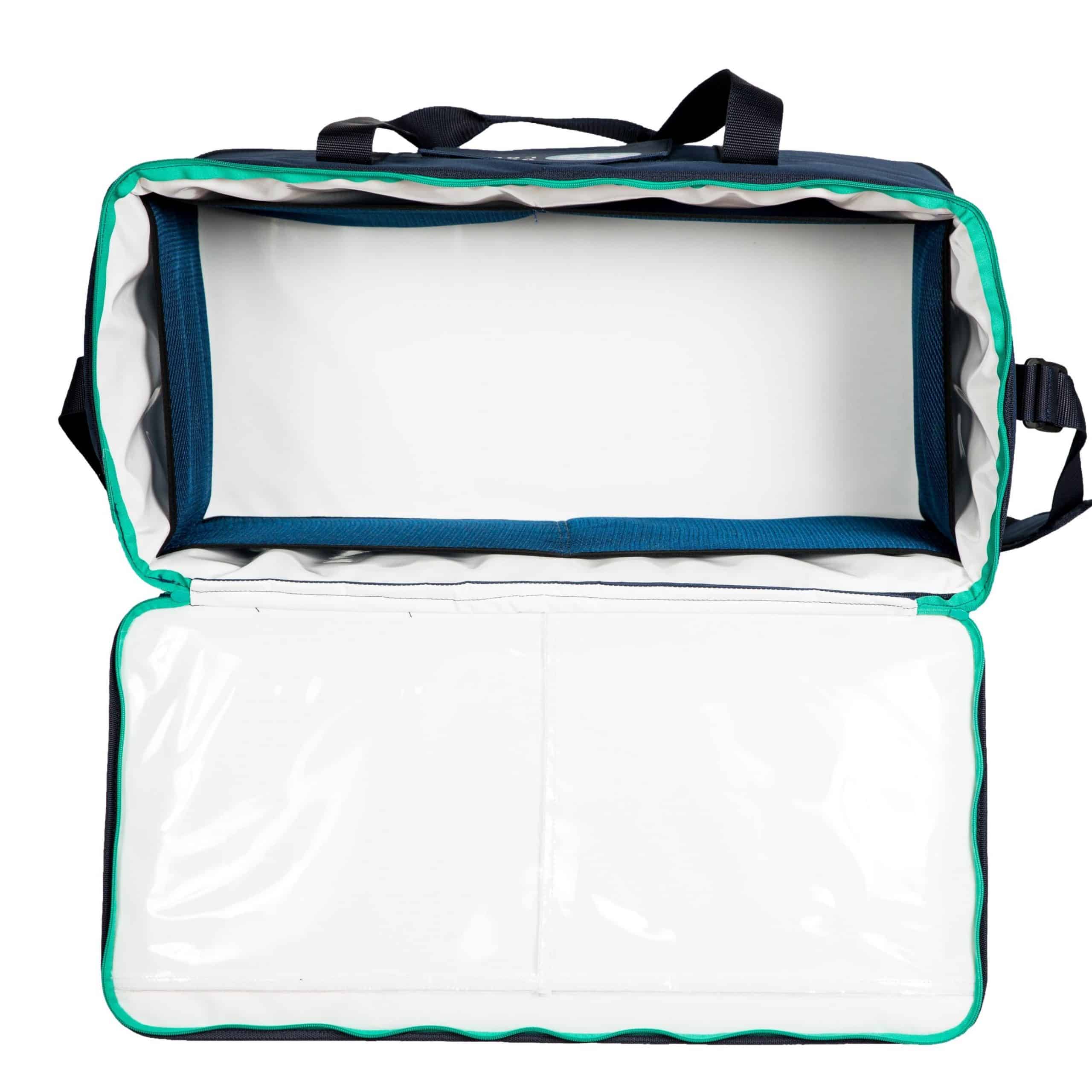 Sacoche isotherme 50 litres IsoCase, pour le transport de produits thermosensibles, associée à des gels froids rigides. Elle est adaptée pour les professions para-médicales ou encore pour les métiers de bouche.